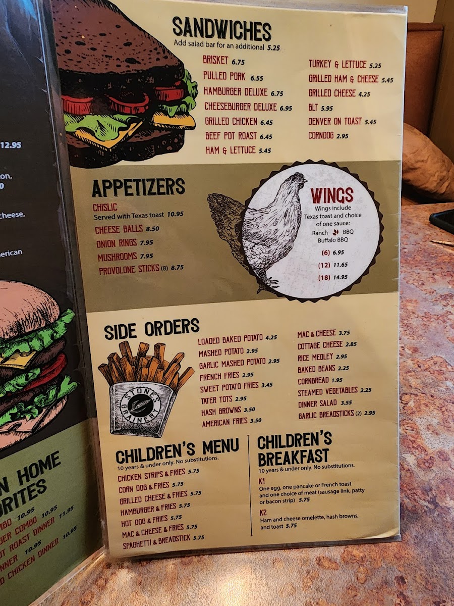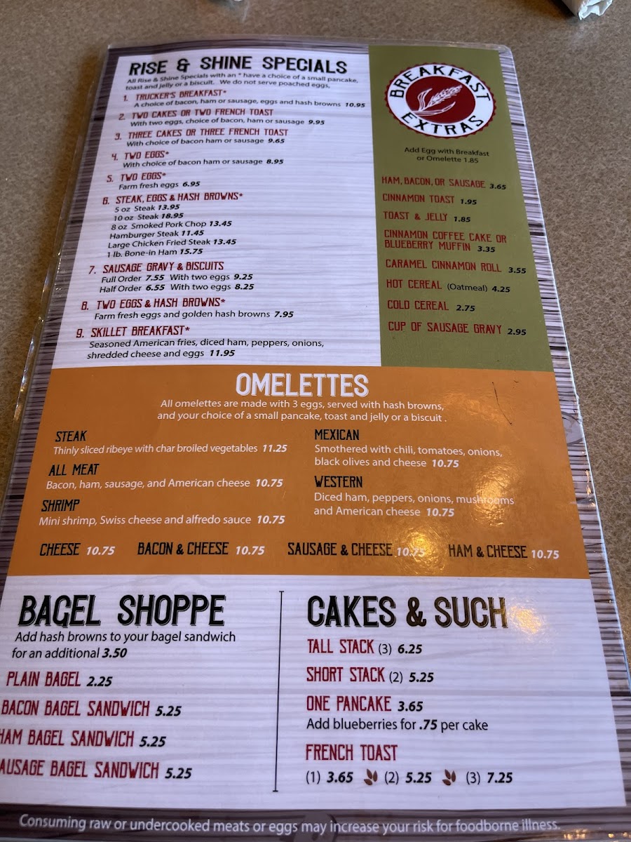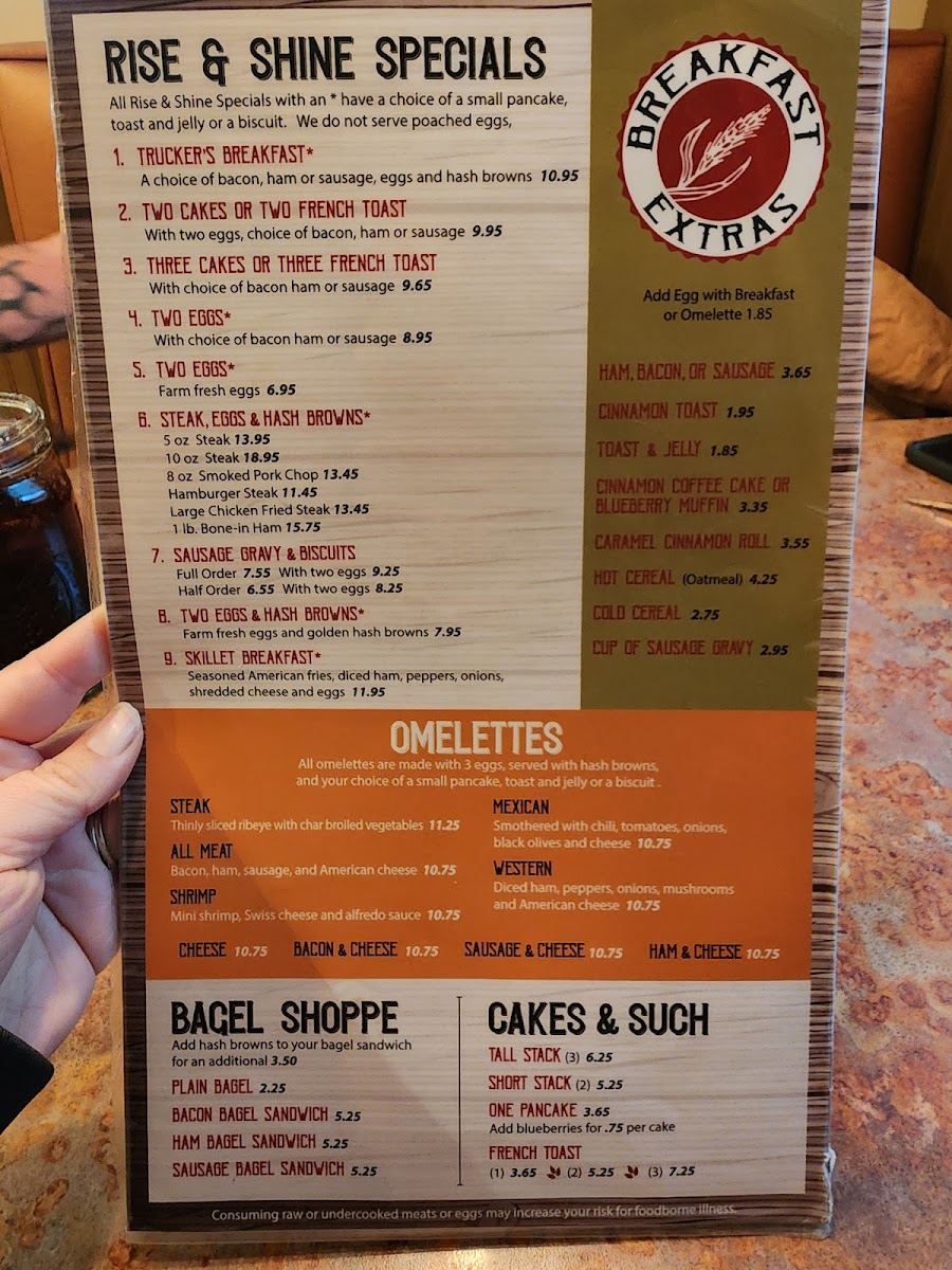 Start your day with their enticing Rise & Shine Specials, which feature dishes like the Trucker's Breakfast with bacon, eggs, and hash browns, or opt for the comforting Sausage Gravy & Biscuits. For lunch or dinner, savor expertly prepared brisket and pulled pork dinners that come with a variety of sides, including their popular creamy coleslaw and flavorful cornbread.